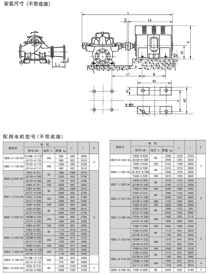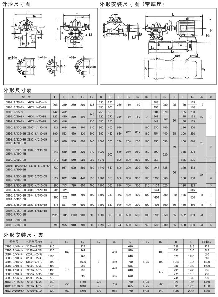 XBD-SH型消防泵系單級、雙吸、泵殼水平中開式離心泵,主要用于建筑、消防給水,供輸送溫度不超過80℃的清水及物理化學性質類似于水的液體之用。改變葉輪、密封