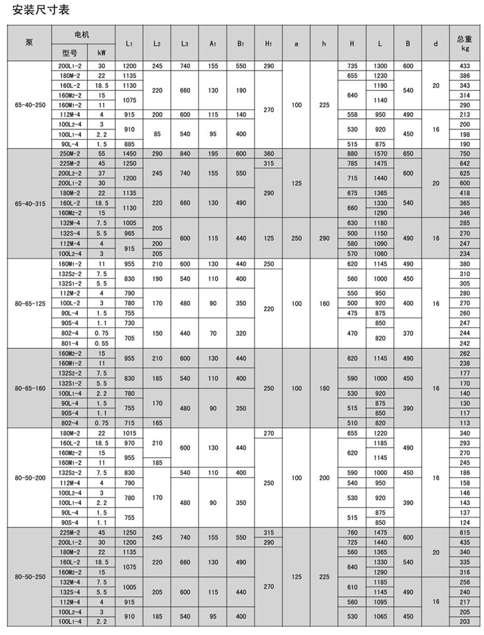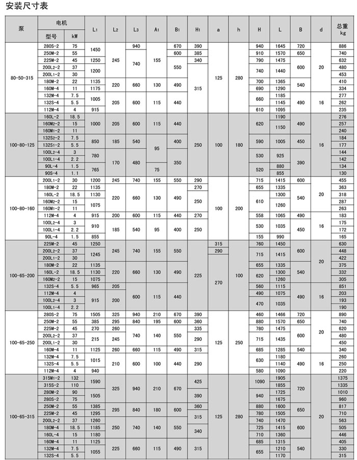 本系列泵共有33個基本型,每種型號都可以通過切割葉輪獲得較低的流量和揚程,用戶在訂貨時可向本廠提出要求。