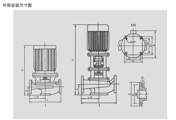泵的進出口直徑相同并且其中心線在同一條線上,能像閥門一樣安裝在管道的任何位置及任何方向,另外泵還設有底座,極大地方便了泵的安裝和固定。